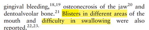 پلاکهای قرمز و تاولهای احتمالی روی زبان و کام به همراه دشواری در بلع